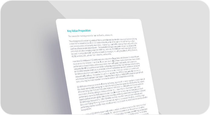 Key Value Proposition The reasons for market penetration are not hard to understand. The emergence of a widening variety of latency-sensitive and bandwidth-heavy applications is driving a need for increased demands on corporate networks, while at the same time reinforcing a certain cost consciousness and security awareness. Increasingly, data traffic no longer lives solely within the confines of a corporate data network. The trends to leverage cloud platforms such as UCaaS, CRM, and email are also changing corporate WAN requirements. SD-WAN can meet these needs and can be used in conjunction with any other network technologies, including broadband, MPLS, Ethernet, 4G/5G wireless, DSL, private fiber networks, and satellite. How does SD-WAN work? SD-WAN evaluates network traffic patterns and chooses the most efficient route across the network in real time. It can combine multiple lower-cost networks that have variable performance characteristics, and even combine them with guaranteed quality more expensive networks like MPLS to achieve even better performing networks than any individual network alone. An SD-WAN network continuously monitors performance feedback telemetry across an end to end SD-WAN deployment and makes dynamic packet or session level data decision as to which path network traffic will use. If broadband is performing better than MPLS in that particular moment, it will choose the broadband connection. It also has the ability to prioritize traffic based on user defined rules, ensuring the most important or network sensitive traffic is handled accordingly. SD-WAN also enhances network efficiency by leveraging some of the most important characteristics of the cloud; namely fully leveraging the many-to-many connections possible with the internet, instead of transmitting data from point-to-point in predefined networks utilizing the old hub-and-spoke or star models, thereby adding to latency and cost. To further enhance cloud-based application performance, some SD-WAN providers also have direct connections into the most popular cloud- based applications and global data center providers, enabling customers to leverage their networks’ SD-WAN edge deployments. Other SD-WAN providers have their own backbone network, with dedicated high performing network connections regionally or around the globe, providing a high performing express route for more reliable connectivity to countries, where internet latency can often be a problem. The ability of SD-WAN to dynamically make a decision on where to route traffic makes it an ideal solution for higher reliability networks. Multiple service providers can be used in an all-active configuration in order to minimize the impact of an outage. As always, establishing a service level agreement targeting your company’s needs and resources is also highly beneficial. Pre-SD-WAN technology was not very friendly to managing multiple simultaneous networks, at times requiring backup networks to remain dormant awaiting an outage, or taking too long to transition and reroute traffic, which would drop calls and other network sensitive applications. SD-WAN allows for the simultaneous use of the backup network, achieving more combined bandwidth availability and higher performance than any single network due to dynamic routing. “Mid-size and small enterprises are moving quickly to cloud, with large enterprises consideration rates increasing more each day” said Gary Levy, VP Worldwide Alliances and Channels at Oracle Communications. “As mission critical applications are sourced across cloud environments, enterprises are re-thinking how they are leveraging MPLS. We find that enterprises are reducing expensive point to point MPLS circuits, increasing usage of less expensive broadband internet, and rapidly deploying SD-WAN.” Copyright © 2019 AVANT Communications, Inc. 8